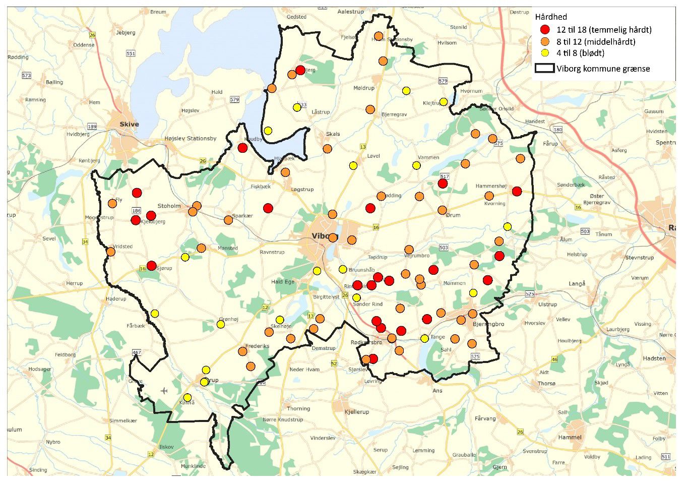 Hårheden i Viborg Kommune varierer mellem 4 og 18