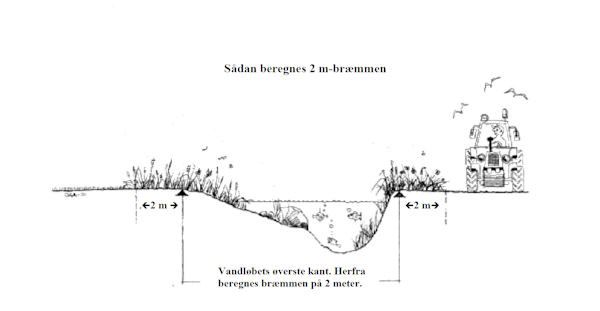2 meter bræmmerne anlægges fra vandløbsbrinkens øverste kant.