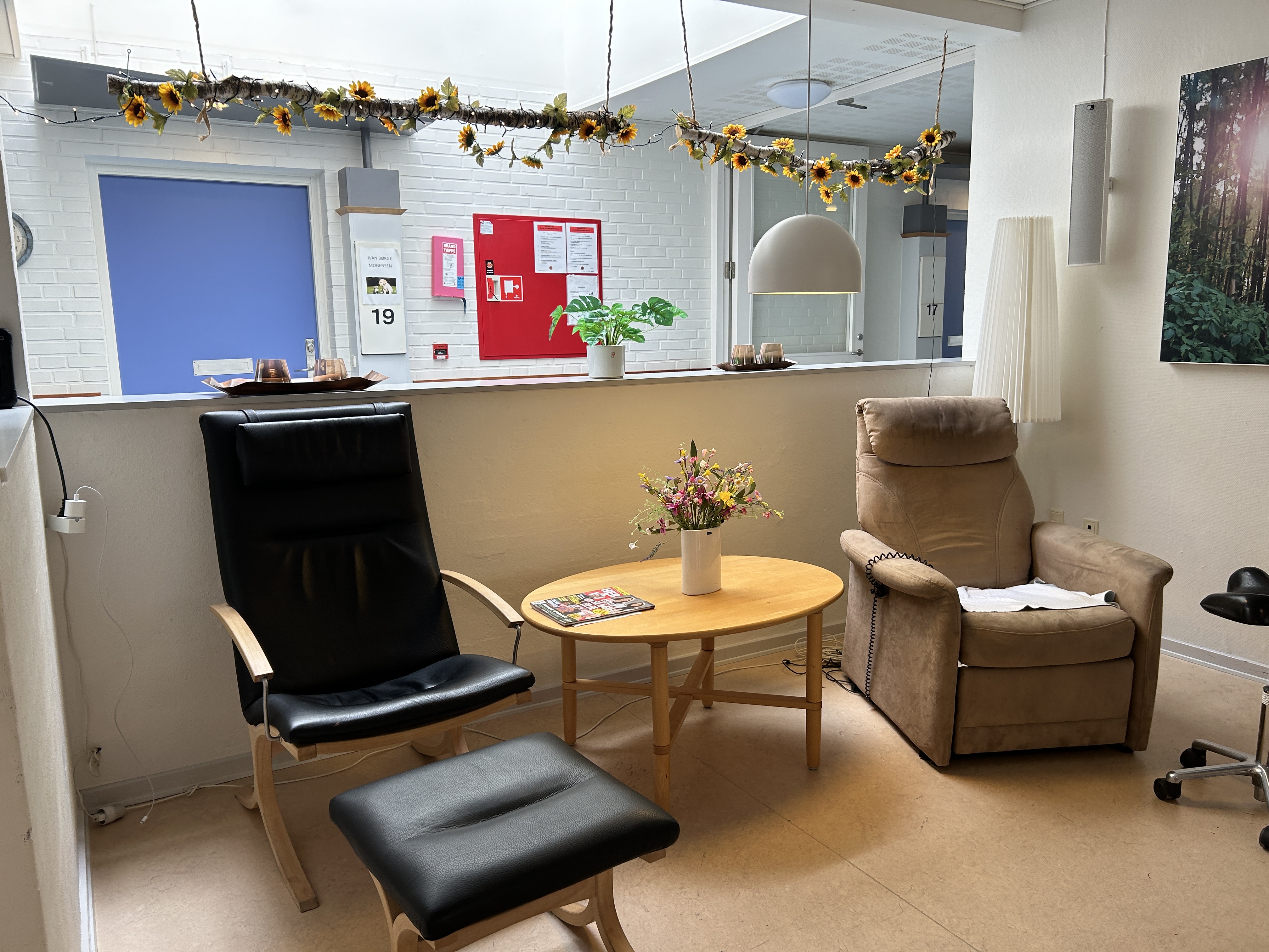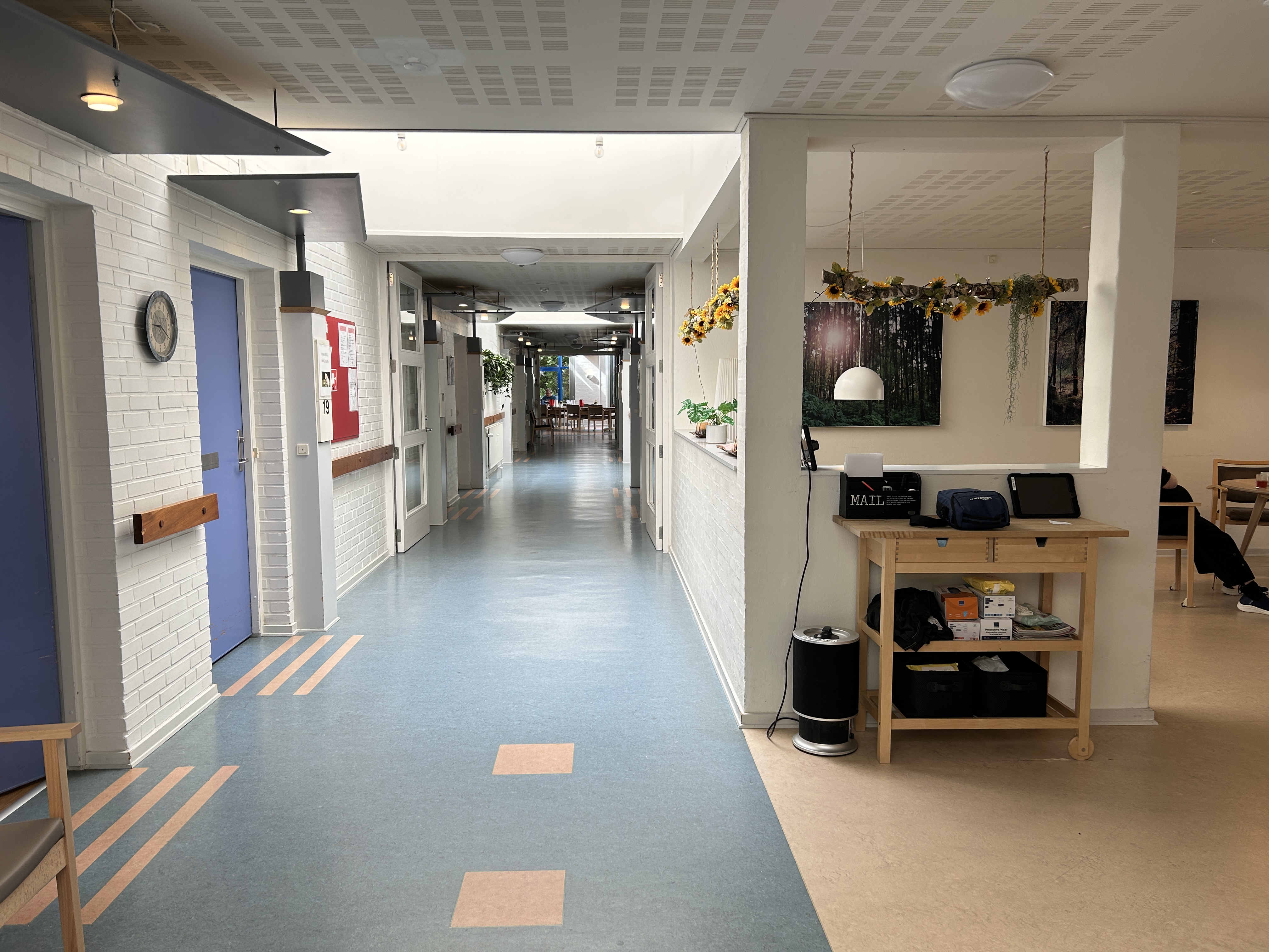 Derudover har vi diverse fælles- og møderum, en sygeplejeklinik, café/festsal, et snoezelrum, som er et sansestimulerende rum, hvor vi kan tilbyde borgerne forskellige kontrollerede stimuli vha. lyd- og synsstimulering og meget andet.