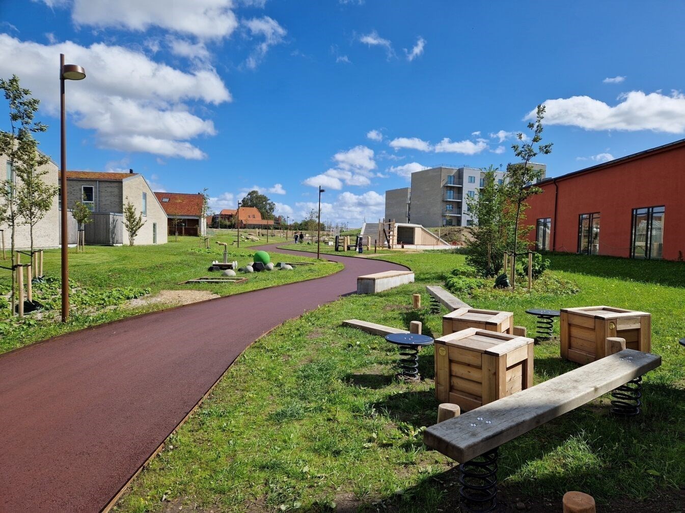 I parken er også en sø og et tørt bassin, der kan bruges til leg og aktiviteter, når der ikke er regnvand i det.