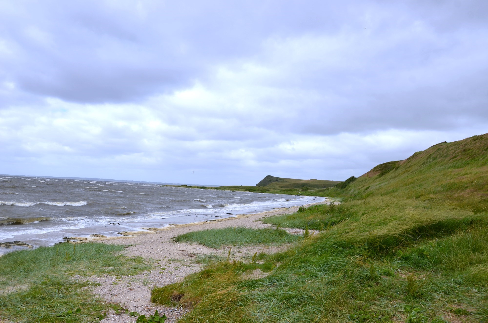 - Smal strand, hvor der er lavvandet, og der i perioder med pålandsvind kan være meget tang.