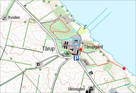 Taarup Kirke ligger tæt ved og har flot inventar og er værd at se, især altertavlen og pulpituret (hævet lidt over gulvet og med plads til 8-10 personer).